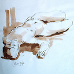 Vlugge schetsen met pen en de schaduwen met peseel aangebracht.